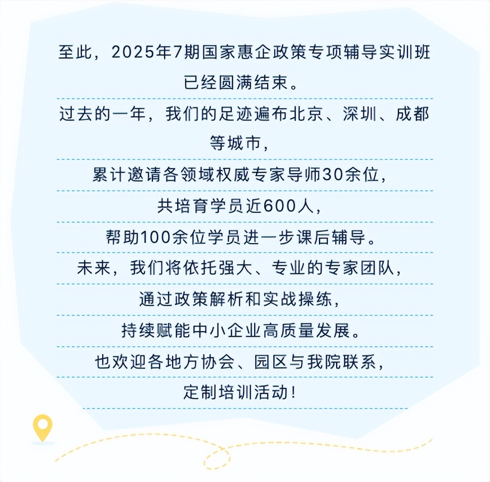 国家惠企政策专项辅导实训班将继续密切关注政策变化趋势,紧贴企业一线需求,不断完善教学内容与方法,努力构建高质量的政策传导和能力提升服务平台。